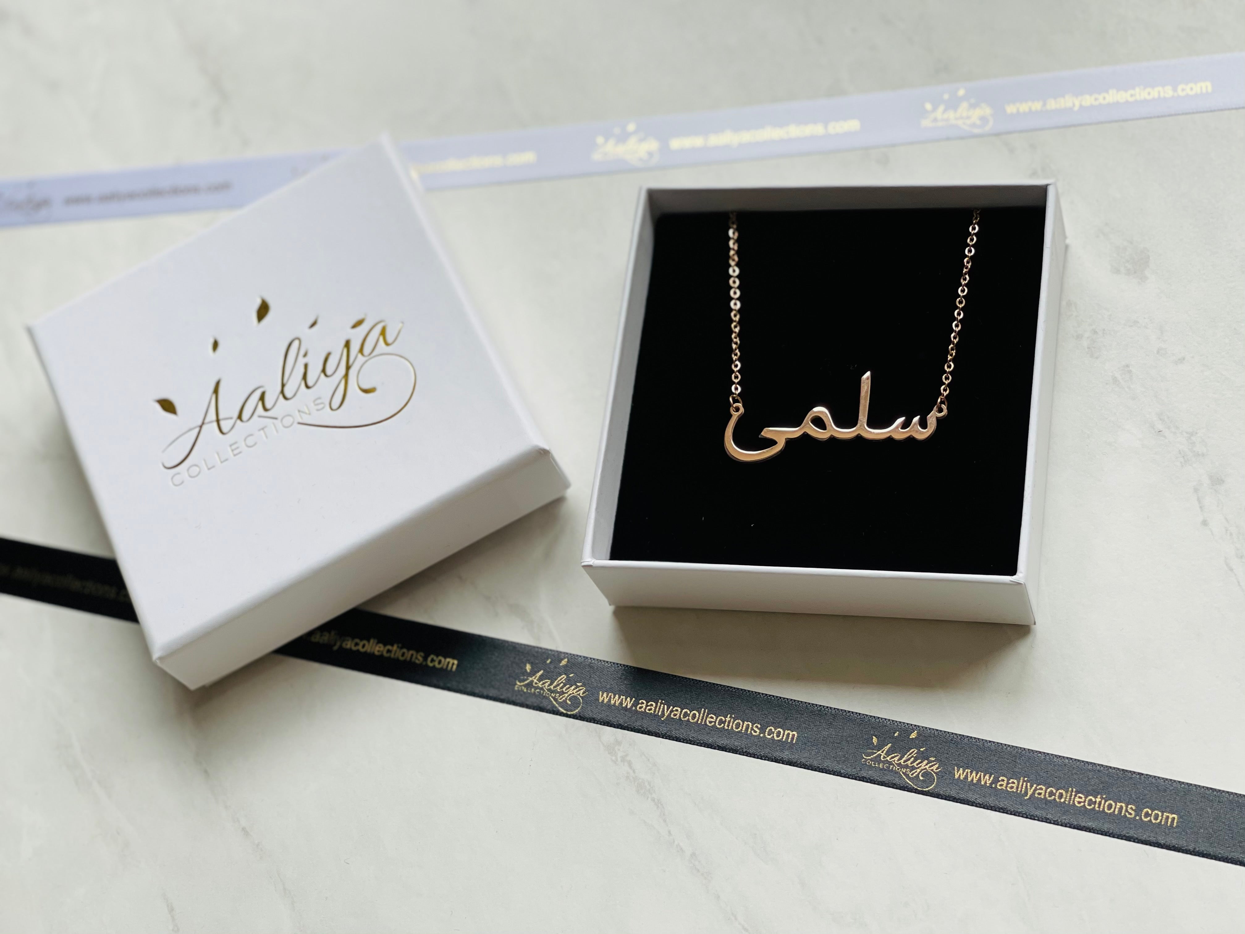 Our Beautiful Arabic Name Necklace available in: 18K Gold Plated, Rose Gold. These are provided with a 55cm Oval Chain... Read more