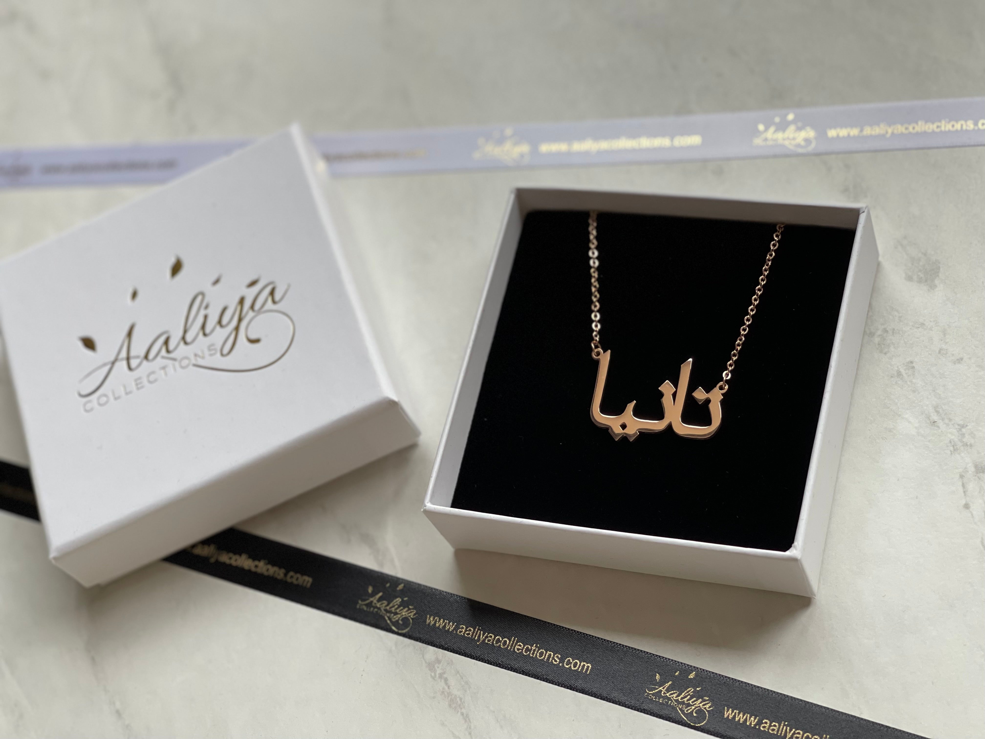 Our Beautiful Arabic Name Necklace available in: 18K Gold Plated, Rose Gold.
