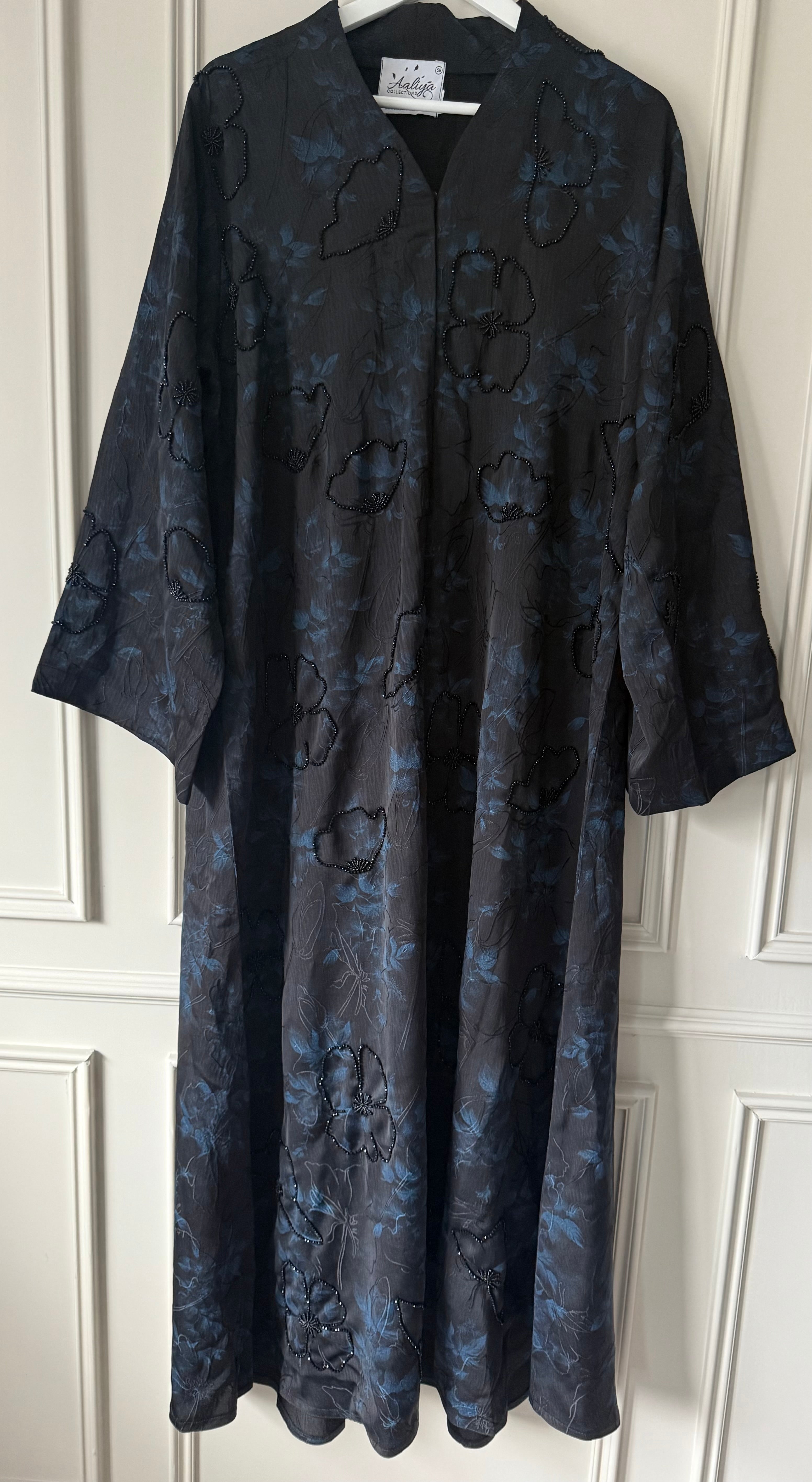 Stunning black/blue abaya with black beaded embellishments. Size 56 Comes with a belt and hijab Read more