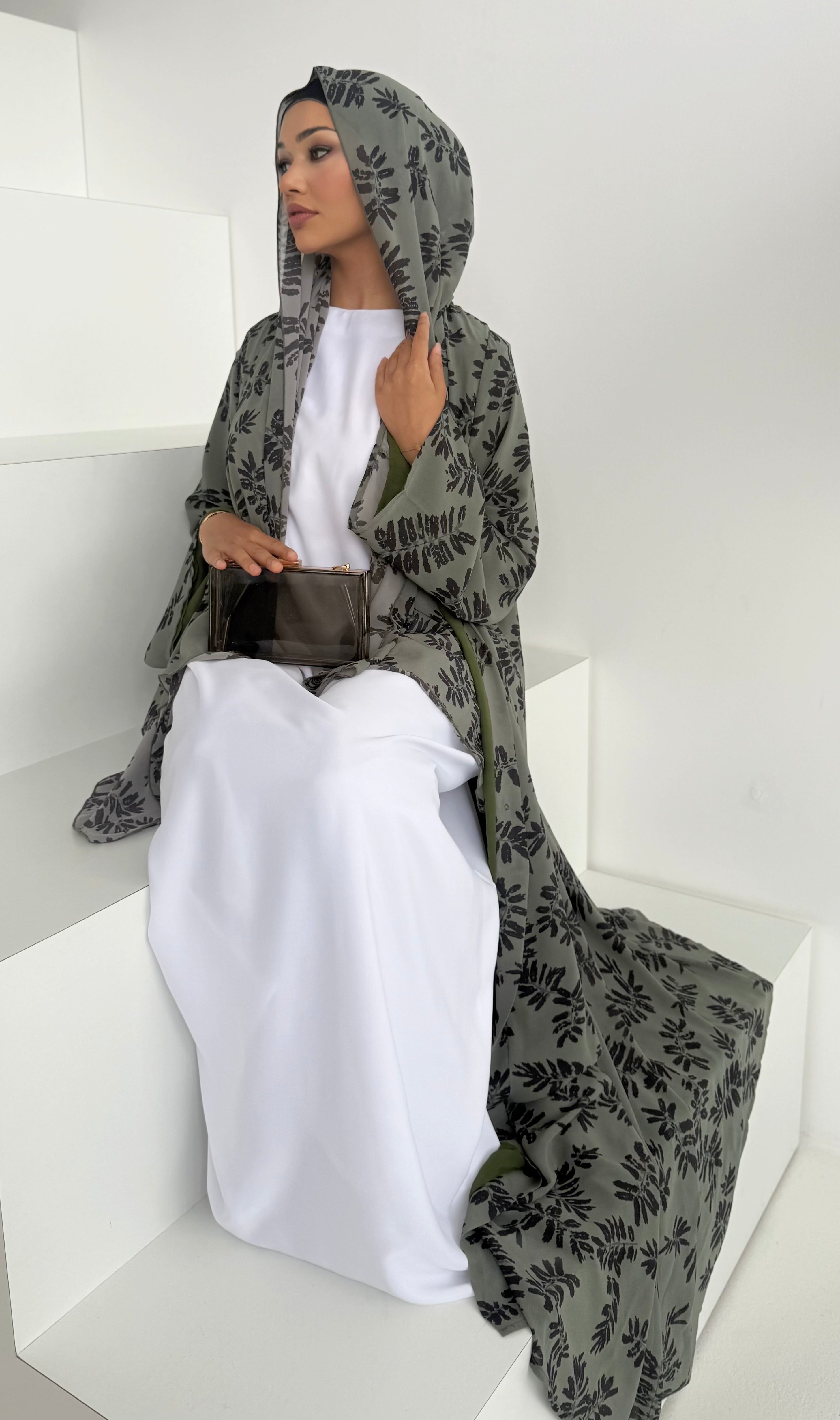 A gorgeous sage chiffon print abaya coming complete with a matching hijab. A versatile piece which can be dressed casually... Read more