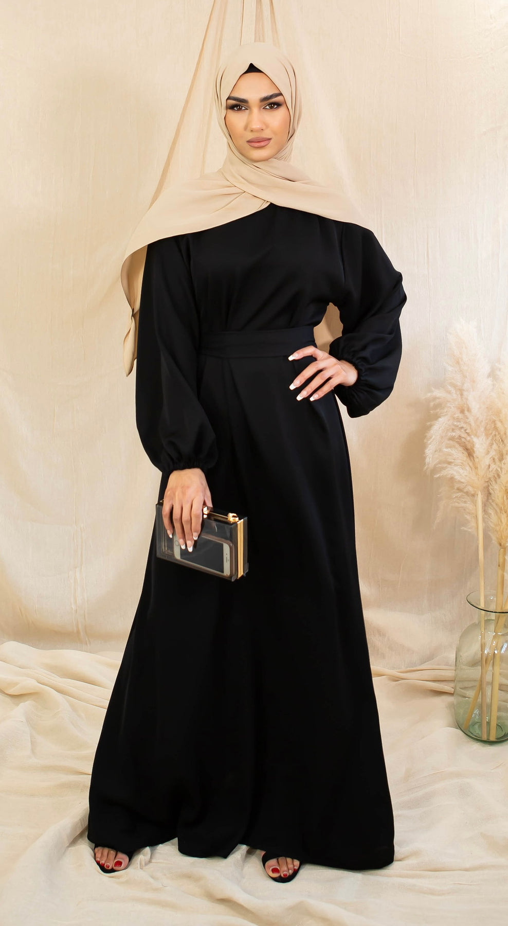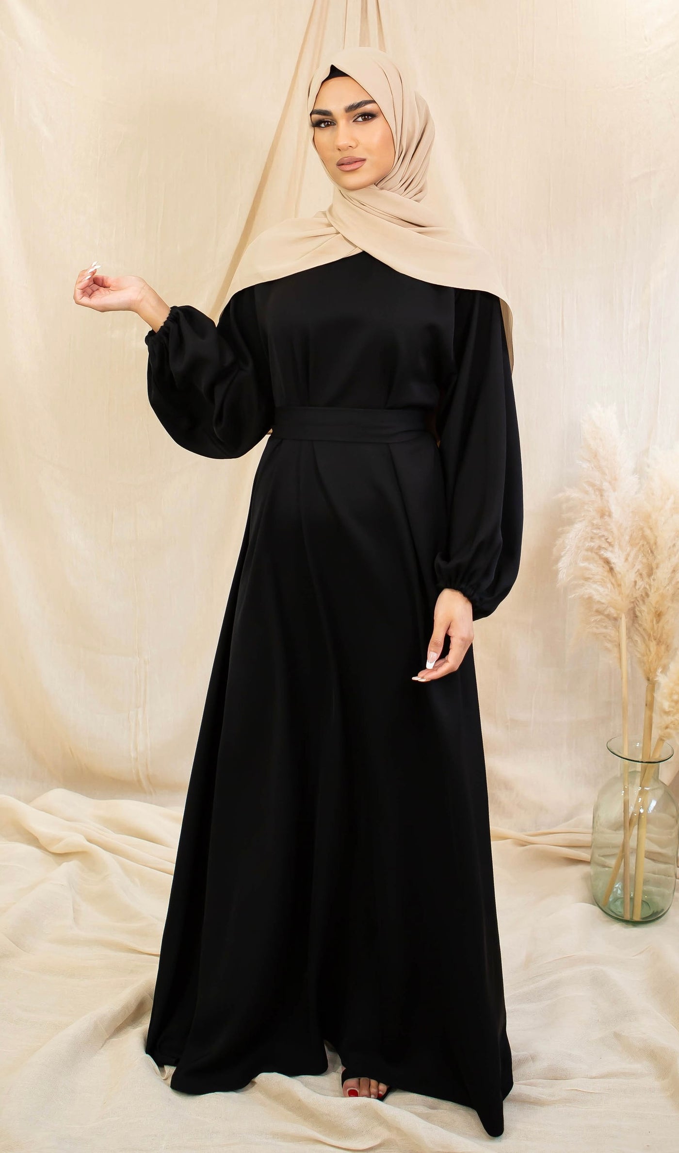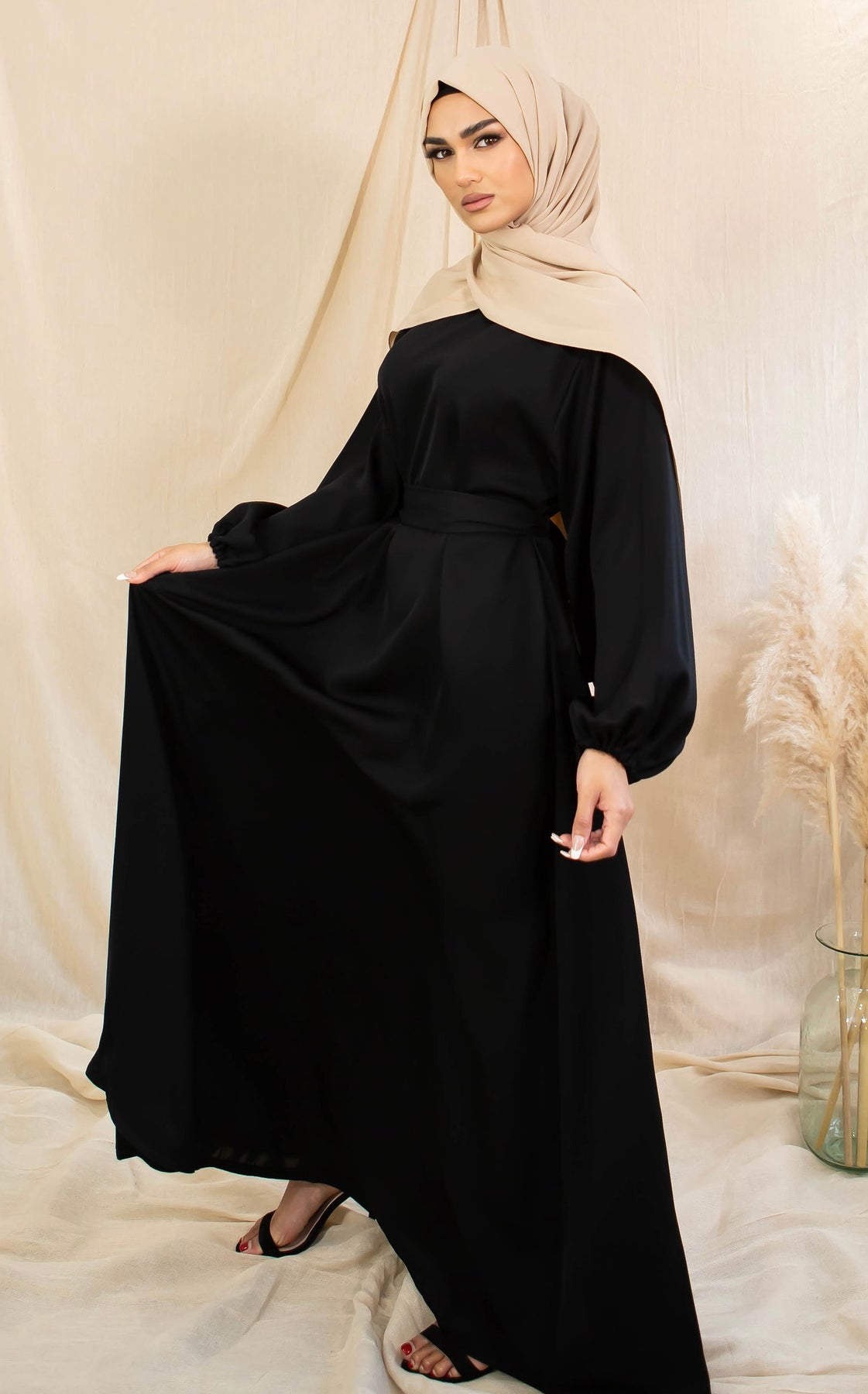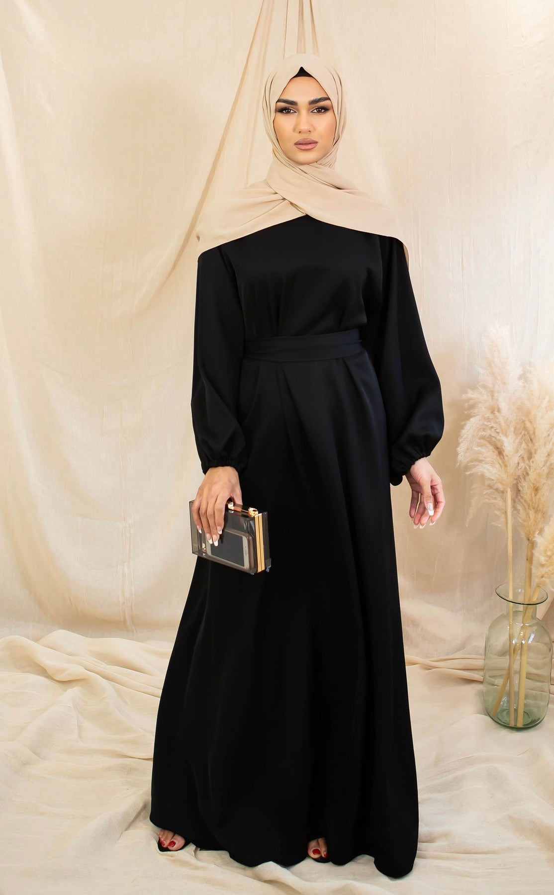 An essential for every modest wardrobe, our flare closed abayas are staple pieces designed to create pure elegance. A loose closed abaya of A line cut, which comes with a matching belt to instantly tailor the abaya to your own size, this abaya is flattering and instantly adds style and grace. The abaya also features gathered elasticated sleeves making it trendy as well as practical.