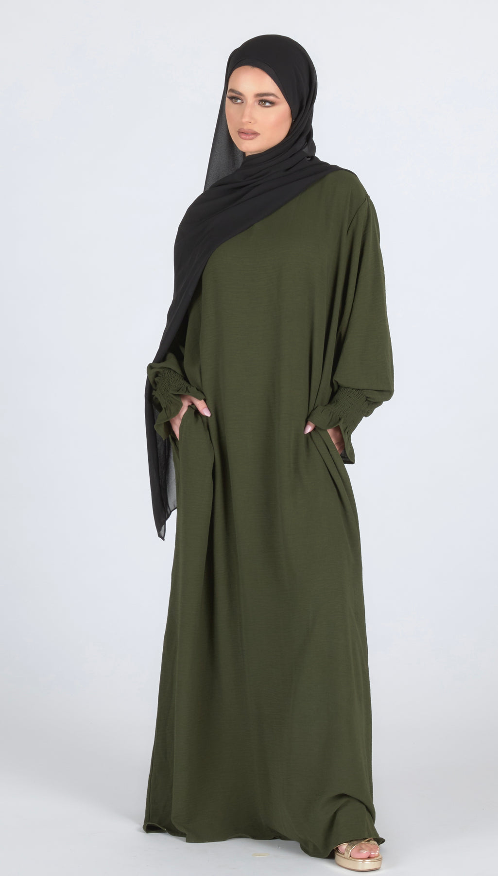 An elegant closed abaya with pretty frill sleeves. The abaya also has hidden pockets for added practicality. Ideal for all... Read more