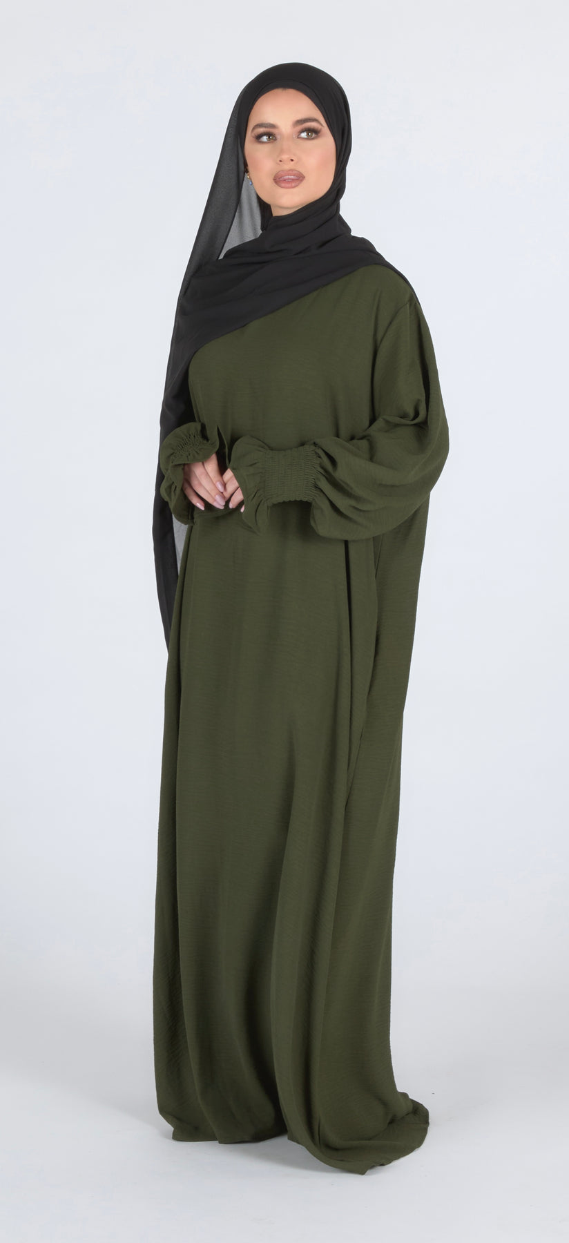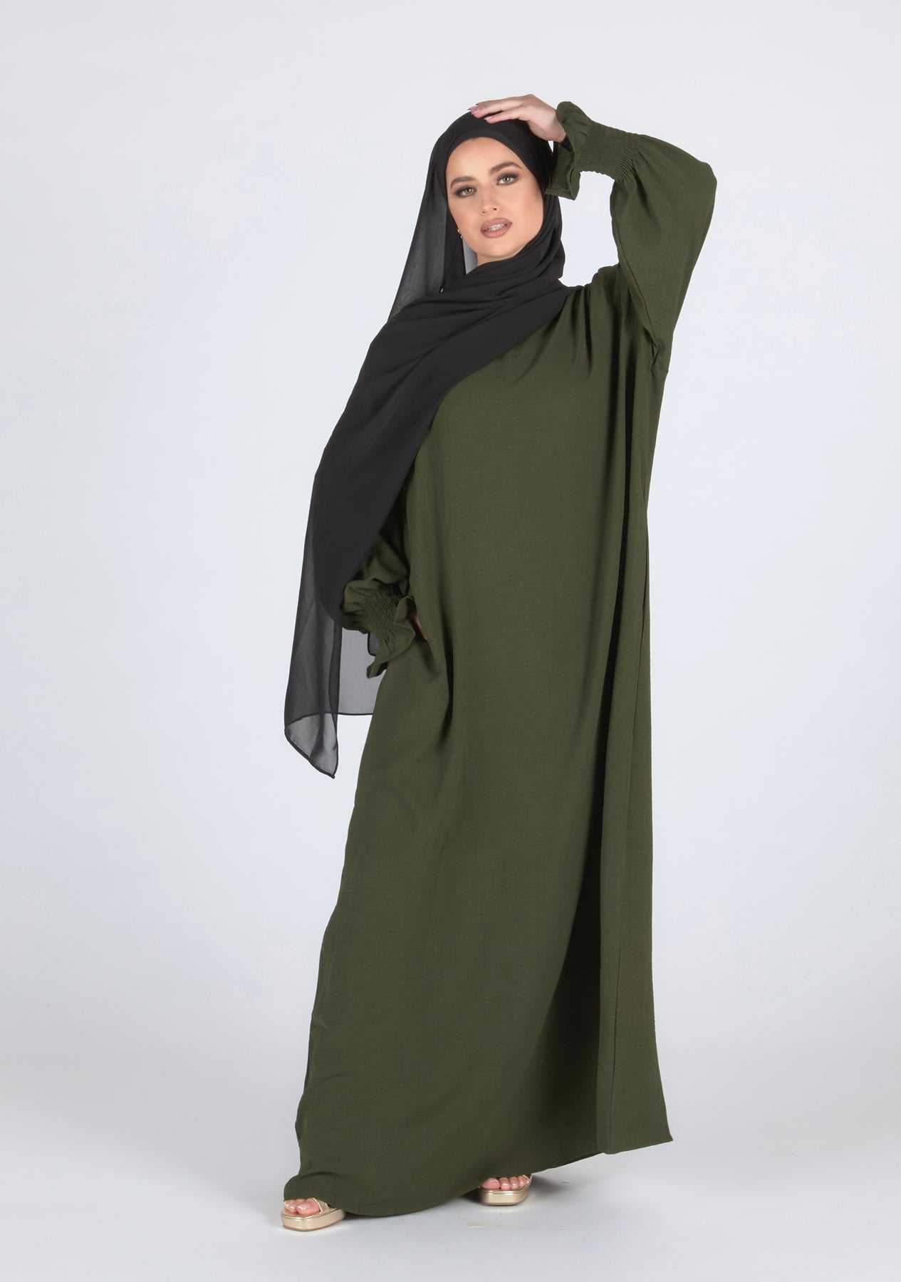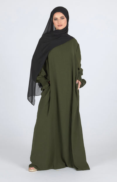 Closed Frill Sleeve Abaya - Khaki