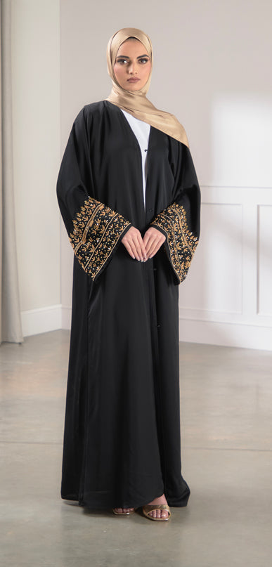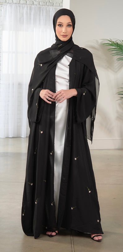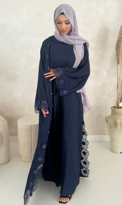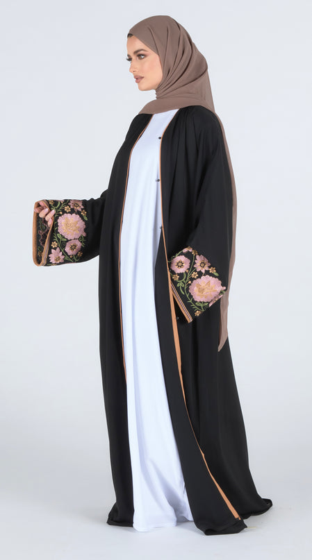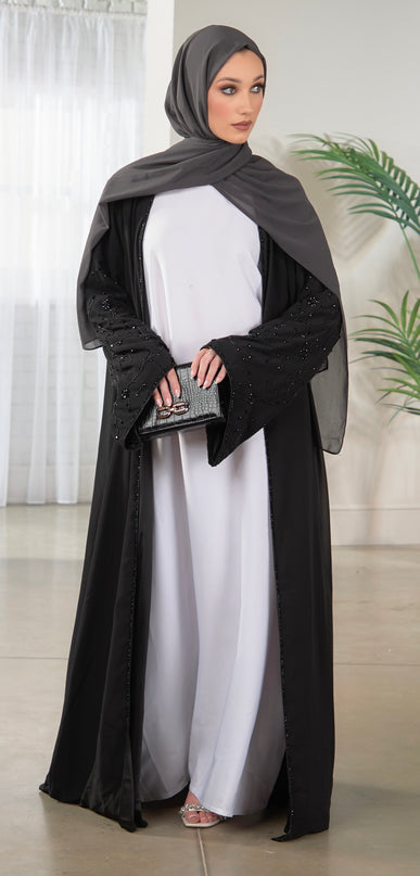 A gorgeous black abaya with purple/silver floral embellished sleeves! Perfect for special events, pair with an inner slip dress to... Read more