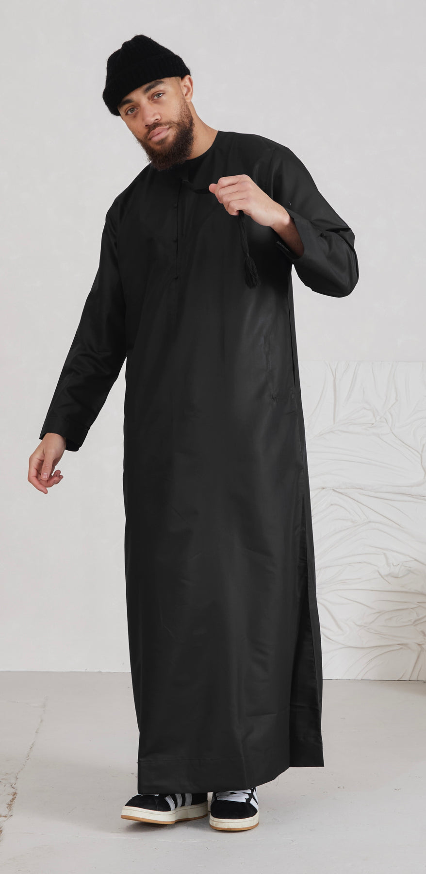 This stylish Black Omani Thobe, features a classic V-Design across the chest and back. Beautiful quality 100% polyester that has... Read more