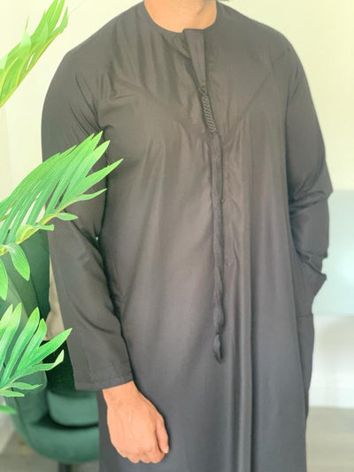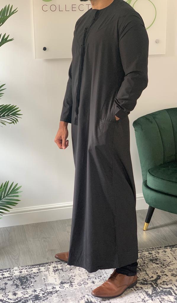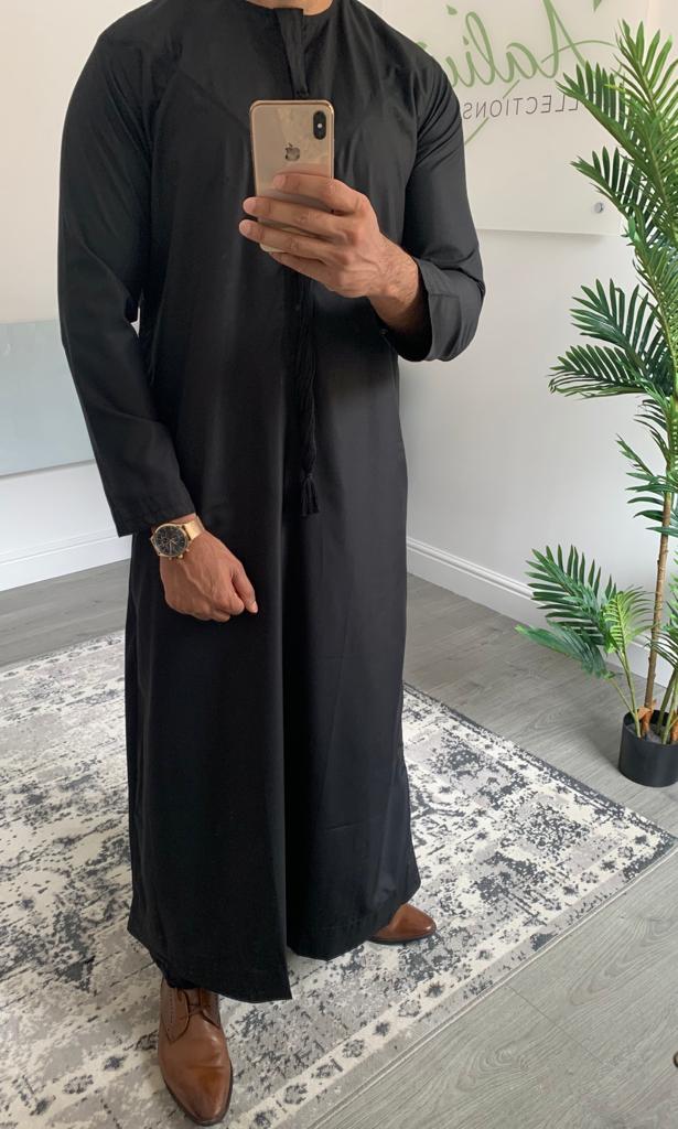 This stylish Black Omani Thobe, features a classic V-Design across the chest and back. Beautiful quality 100% polyester that has... Read more