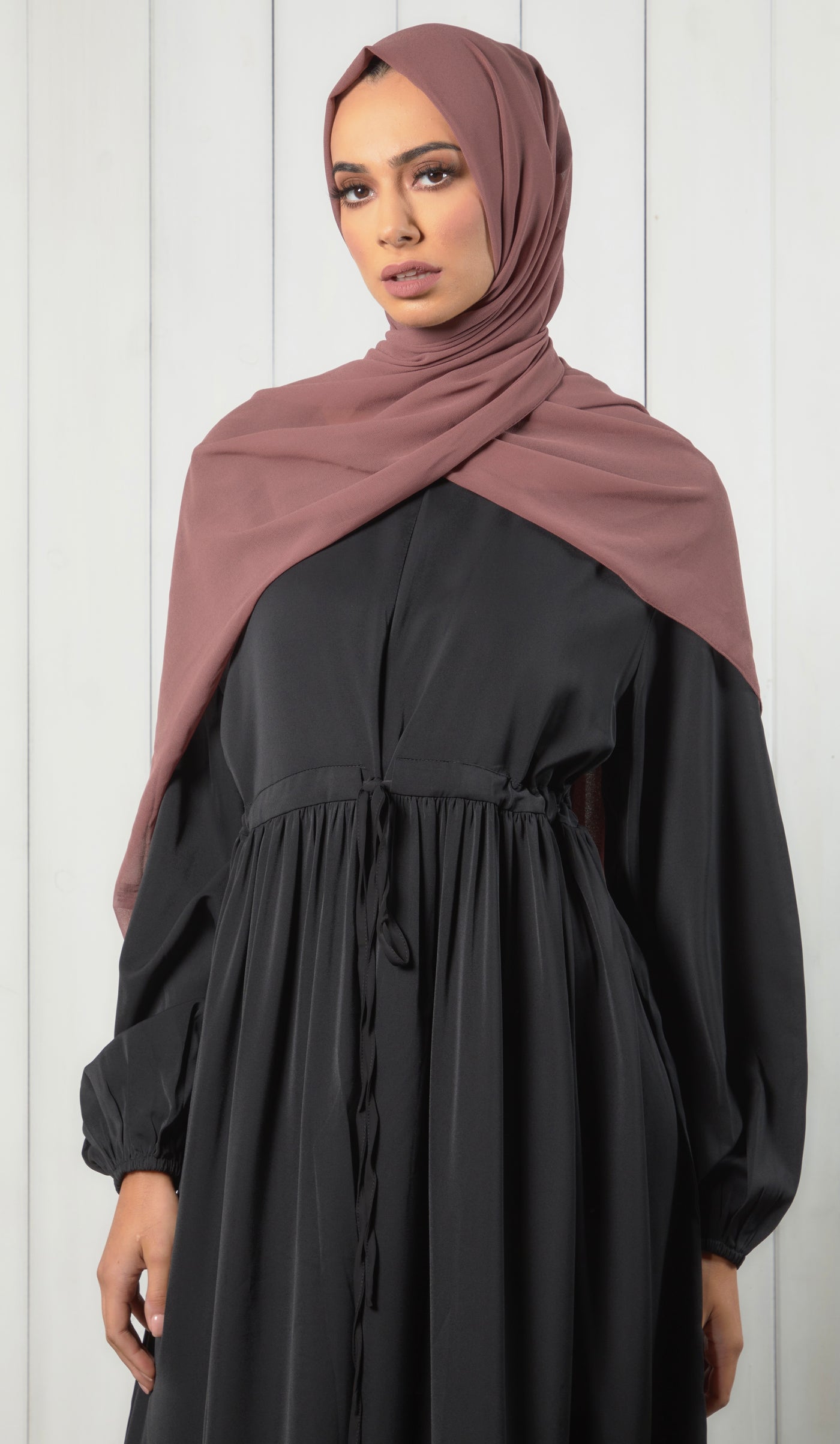 An essential for every modest wardrobe, our Yara closed abayas are staple pieces designed to create pure elegance. A loose closed abaya with a zip fastening at the front and a gathered internal belt to tailor the abaya to your own size.