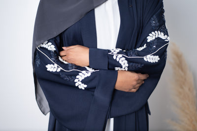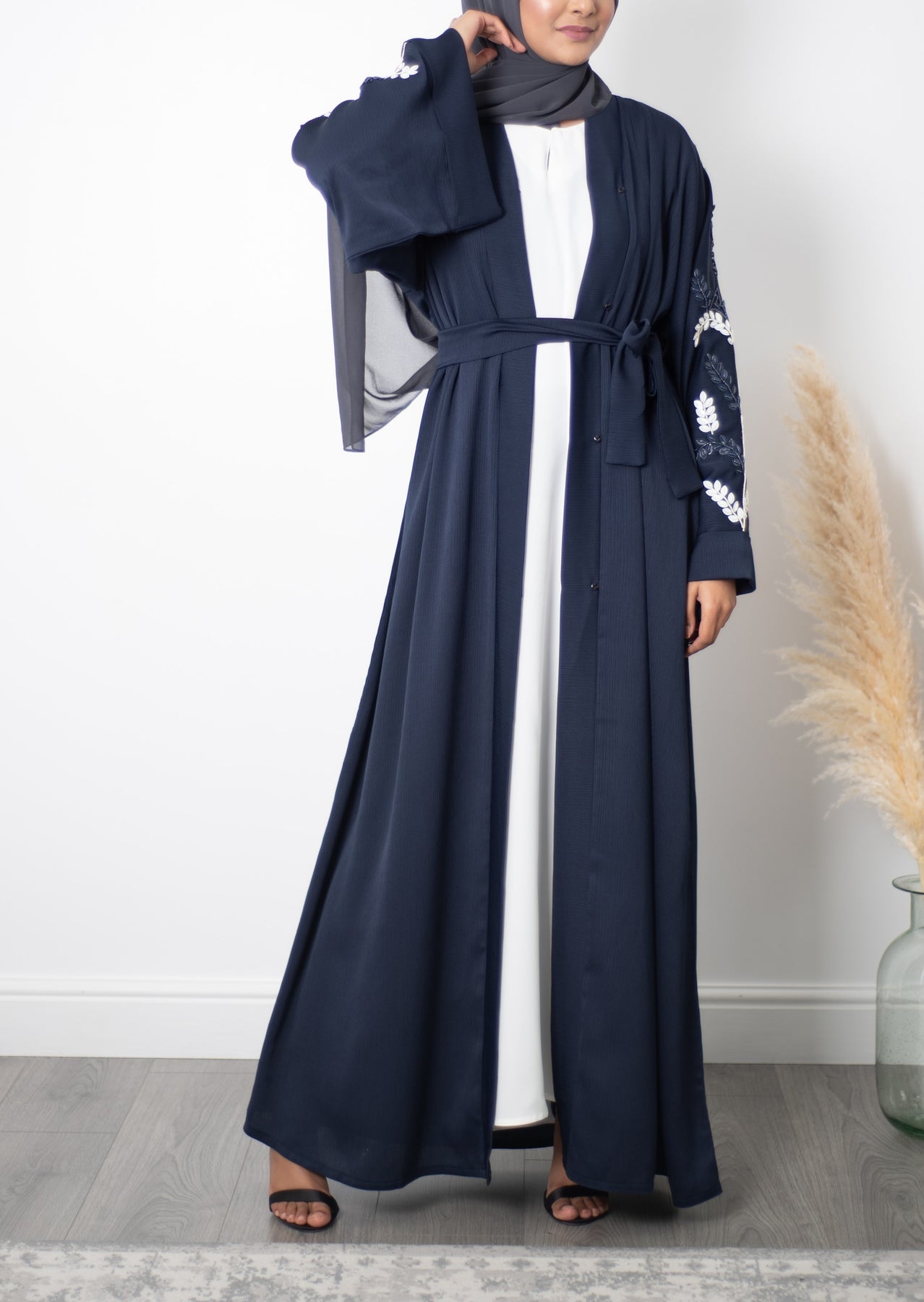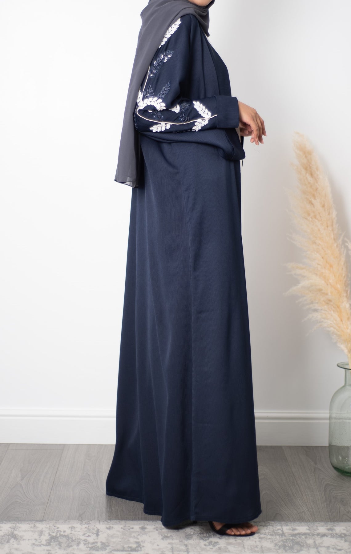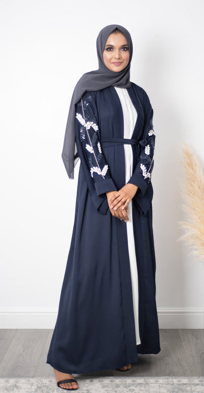 A gorgeous navy abaya adorned with stunning sequin detailing across the arms. Ideal for occasion wear this abaya will have... Read more