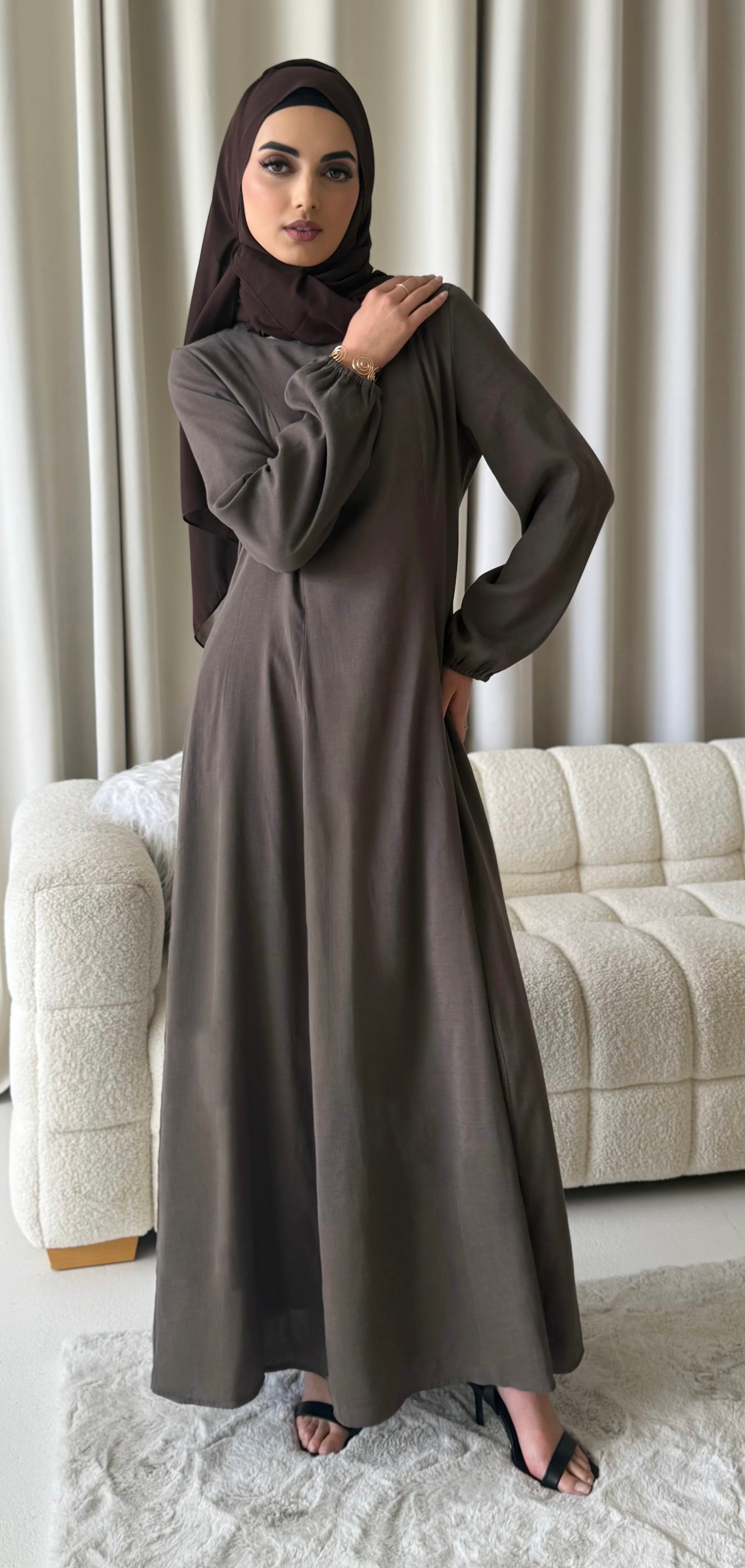 A modest staple! A closed flowy dress with elasticated sleeves. Featuring central panel stitching for a sleek tailored finish. Suitable... Read more