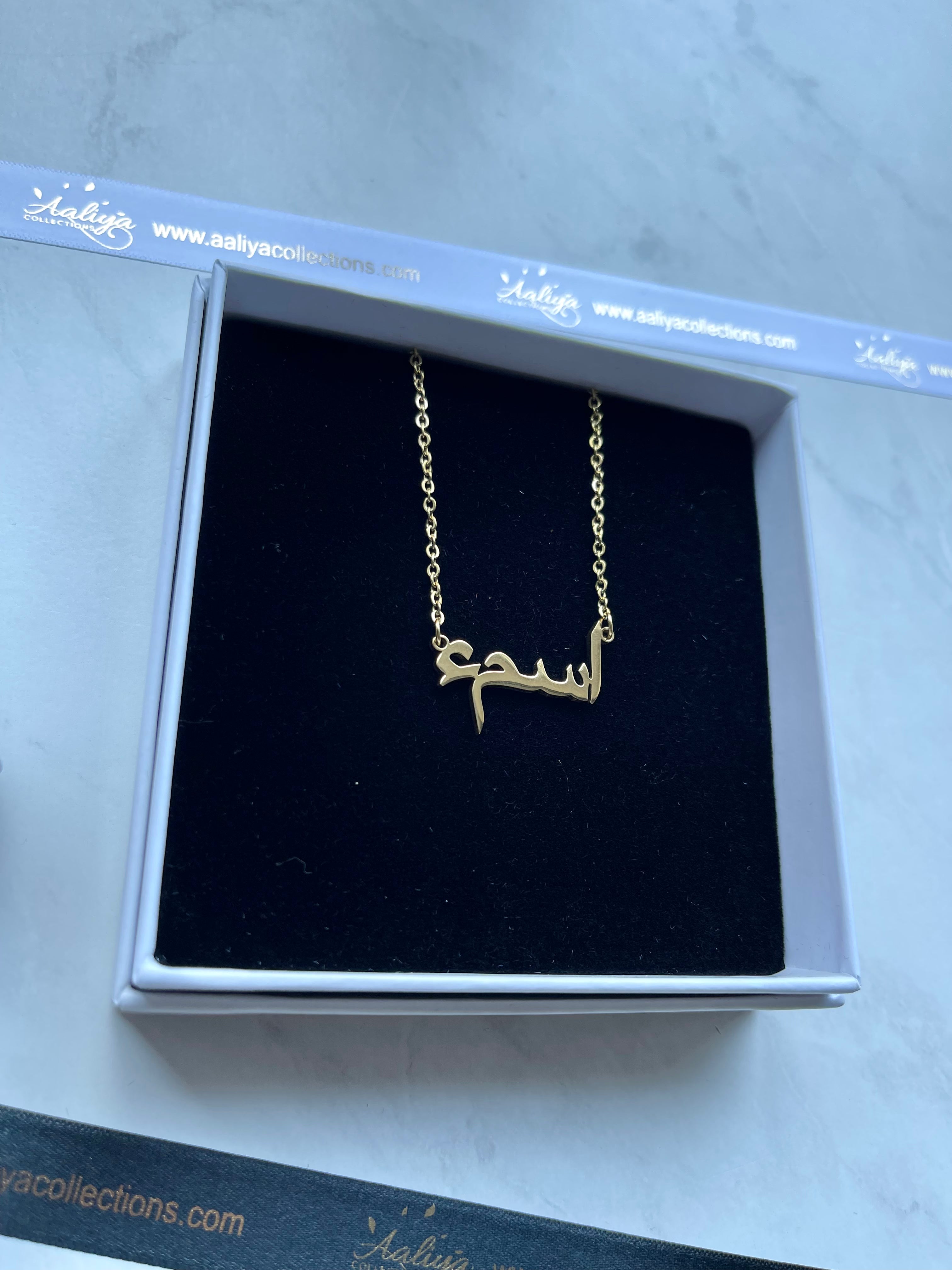 Our Beautiful Arabic Name Necklace available in: 18K Gold Plated, Rose Gold. These are provided with a 55cm Oval Chain... Read more