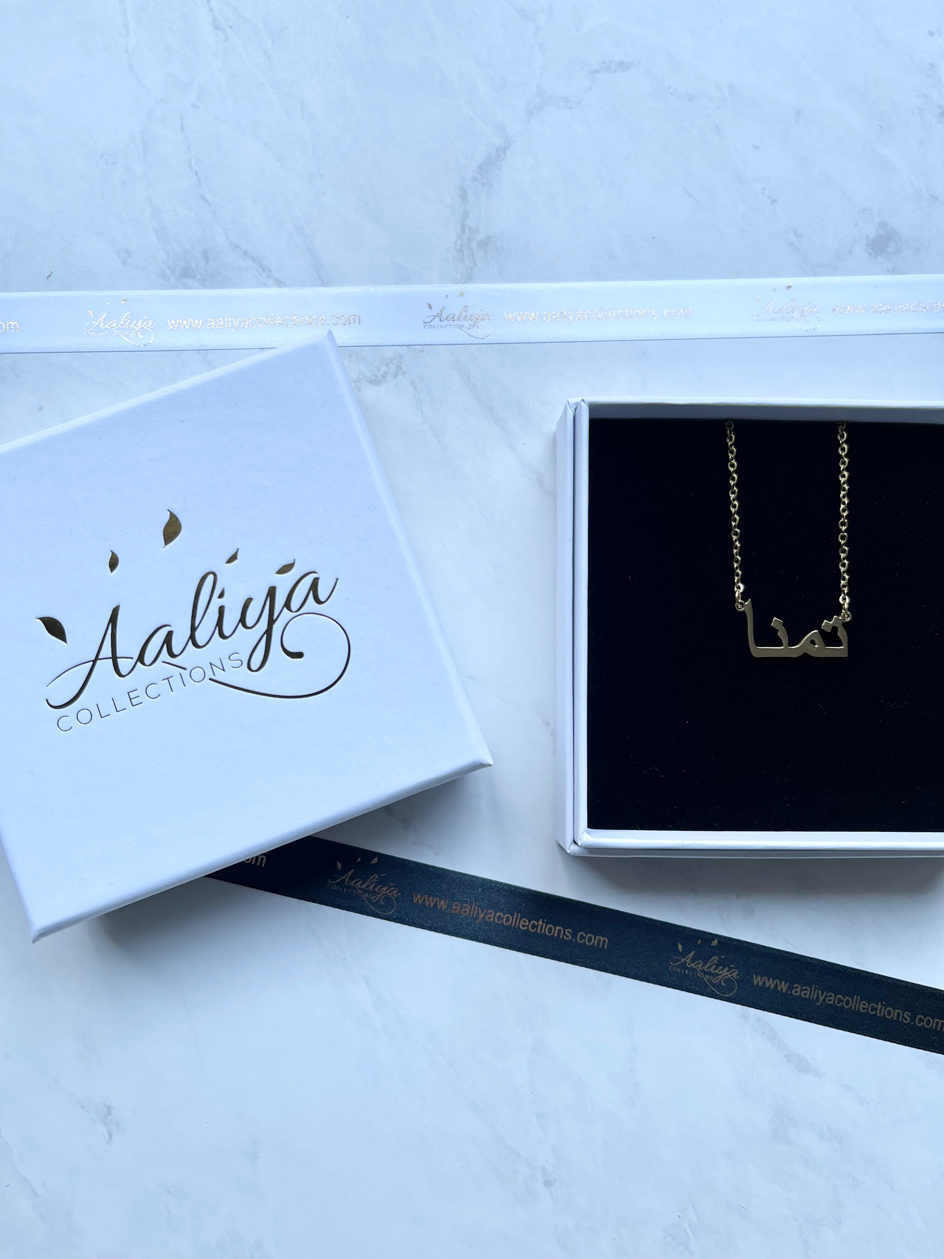 Our Beautiful Arabic Name Necklace available in: 18K Gold Plated, Rose Gold. These are provided with a 55cm Oval Chain... Read more