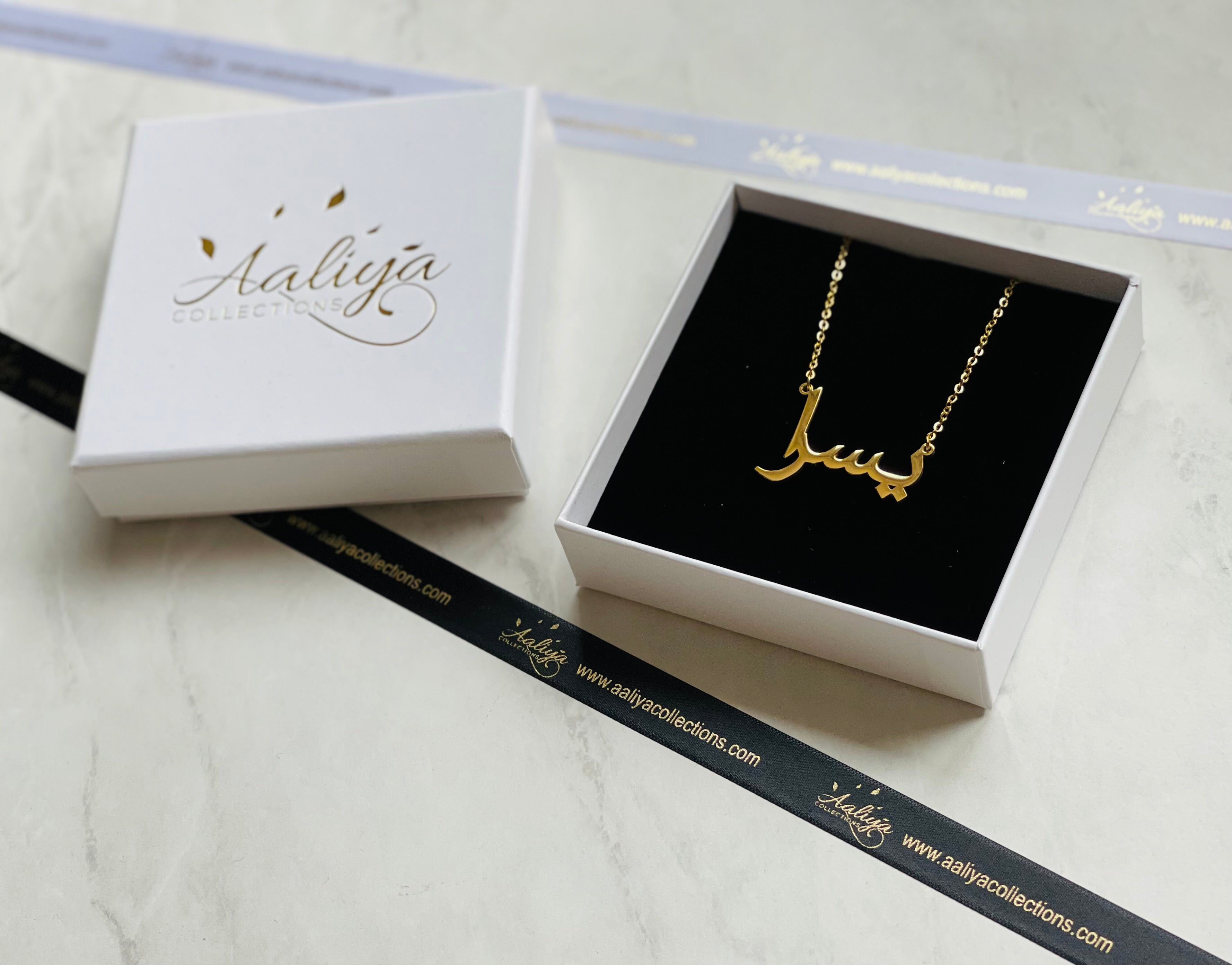 Our Beautiful Arabic Name Necklace available in: 18K Gold Plated, Rose Gold. These are provided with a 55cm Oval Chain... Read more