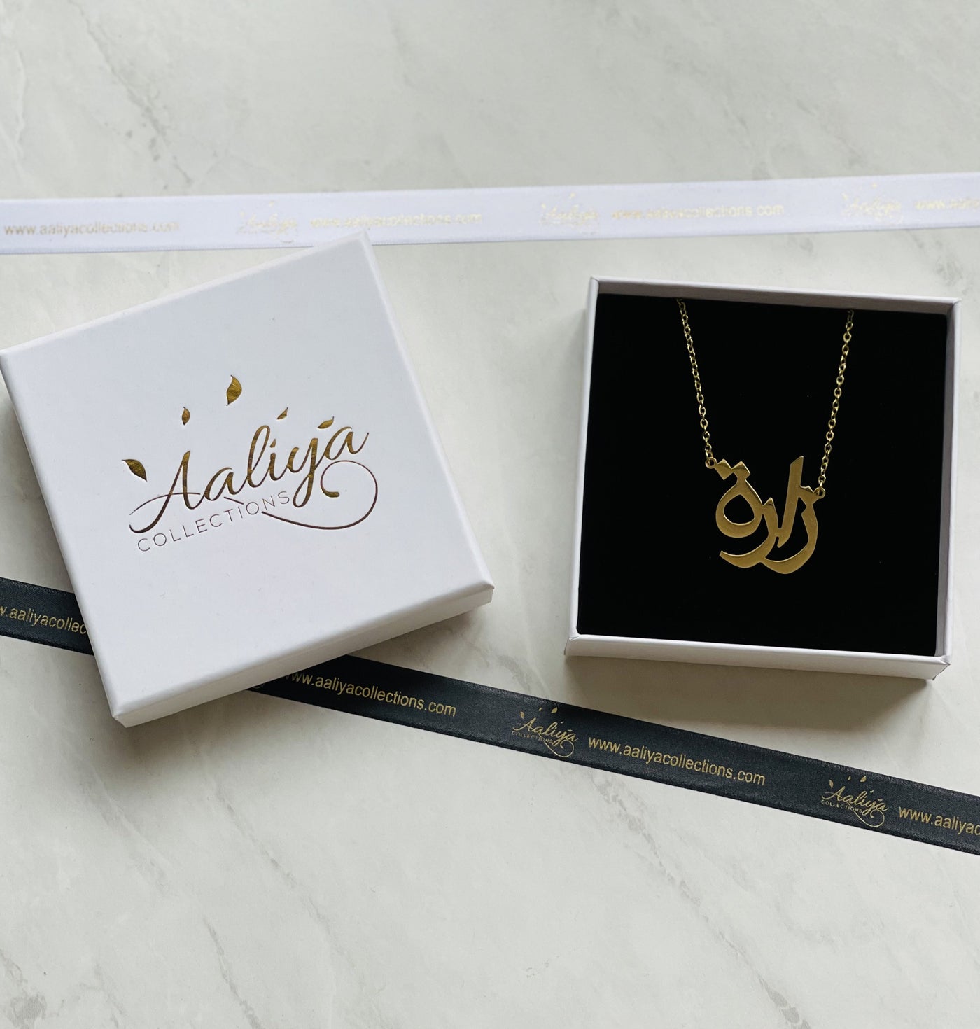 Our Beautiful Arabic Name Necklace available in: 18K Gold Plated, Rose Gold. These are provided with a 55cm Oval Chain... Read more