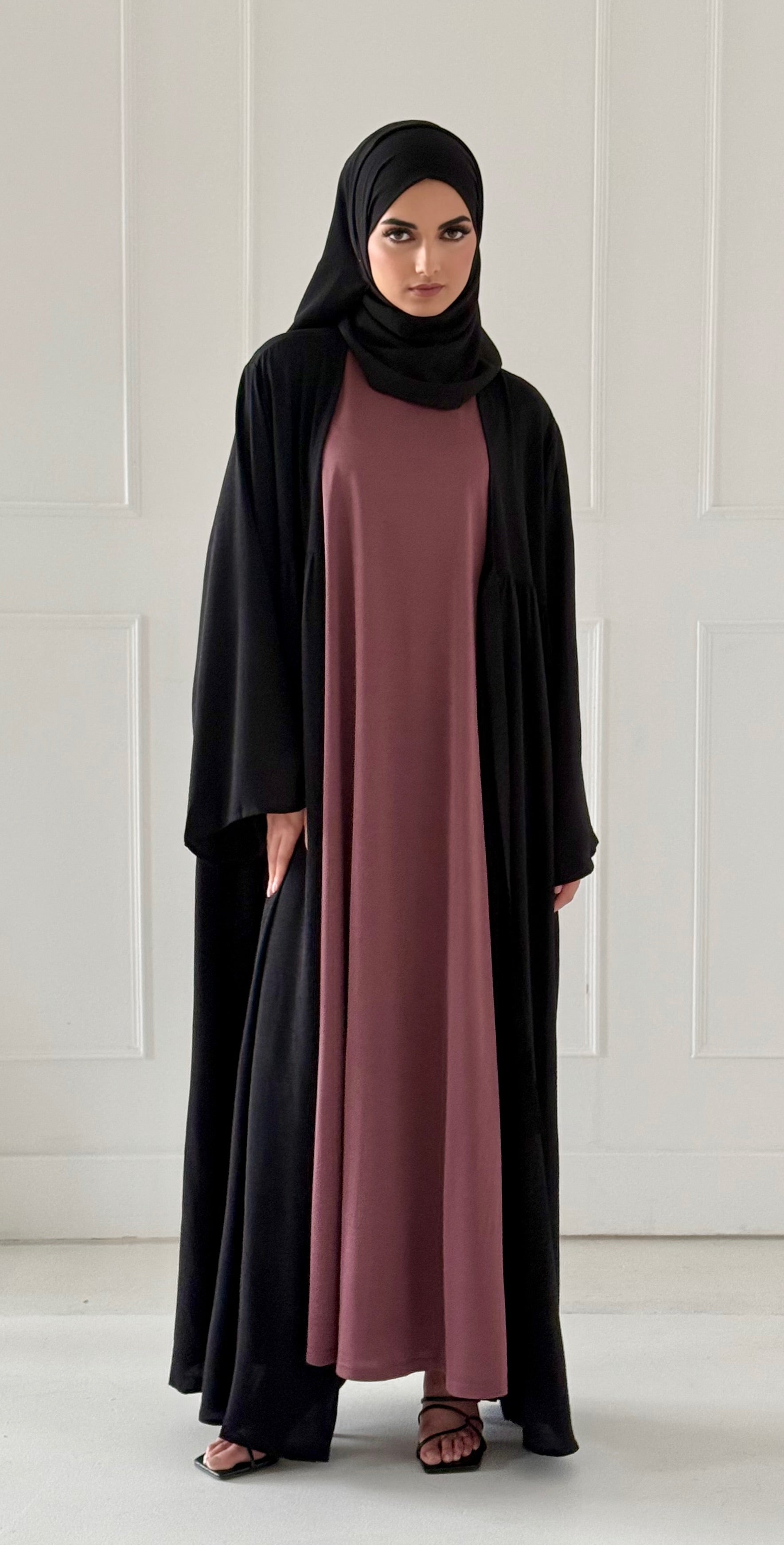 An essential for every modest wardrobe, a plain sleeveless slip dress which can be paired perfectly with our open abayas... Read more