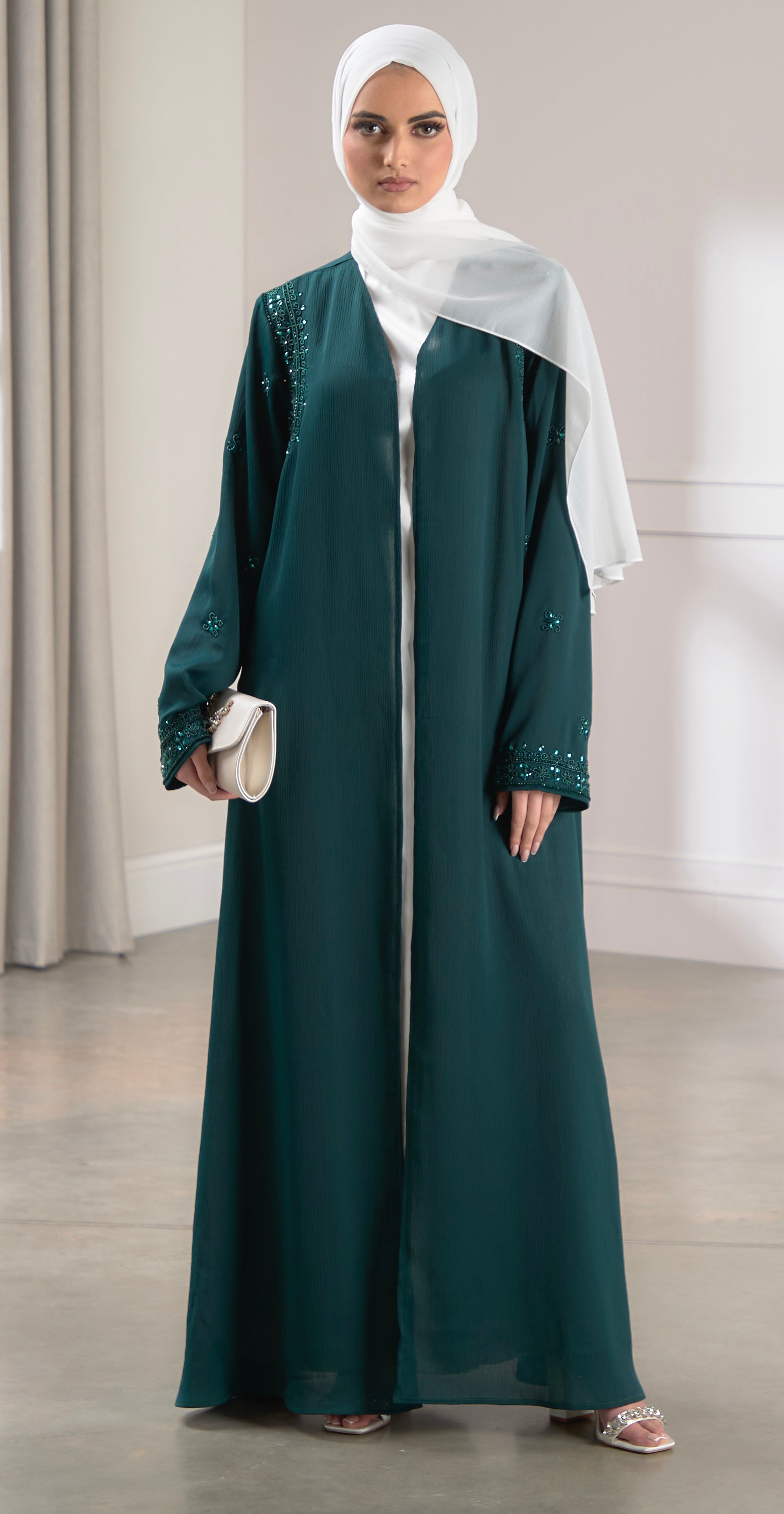 A super elegant abaya perfect for special occasions! Featuring delicate scattered embellishments across the sleeves. Pair with one of our... Read more
