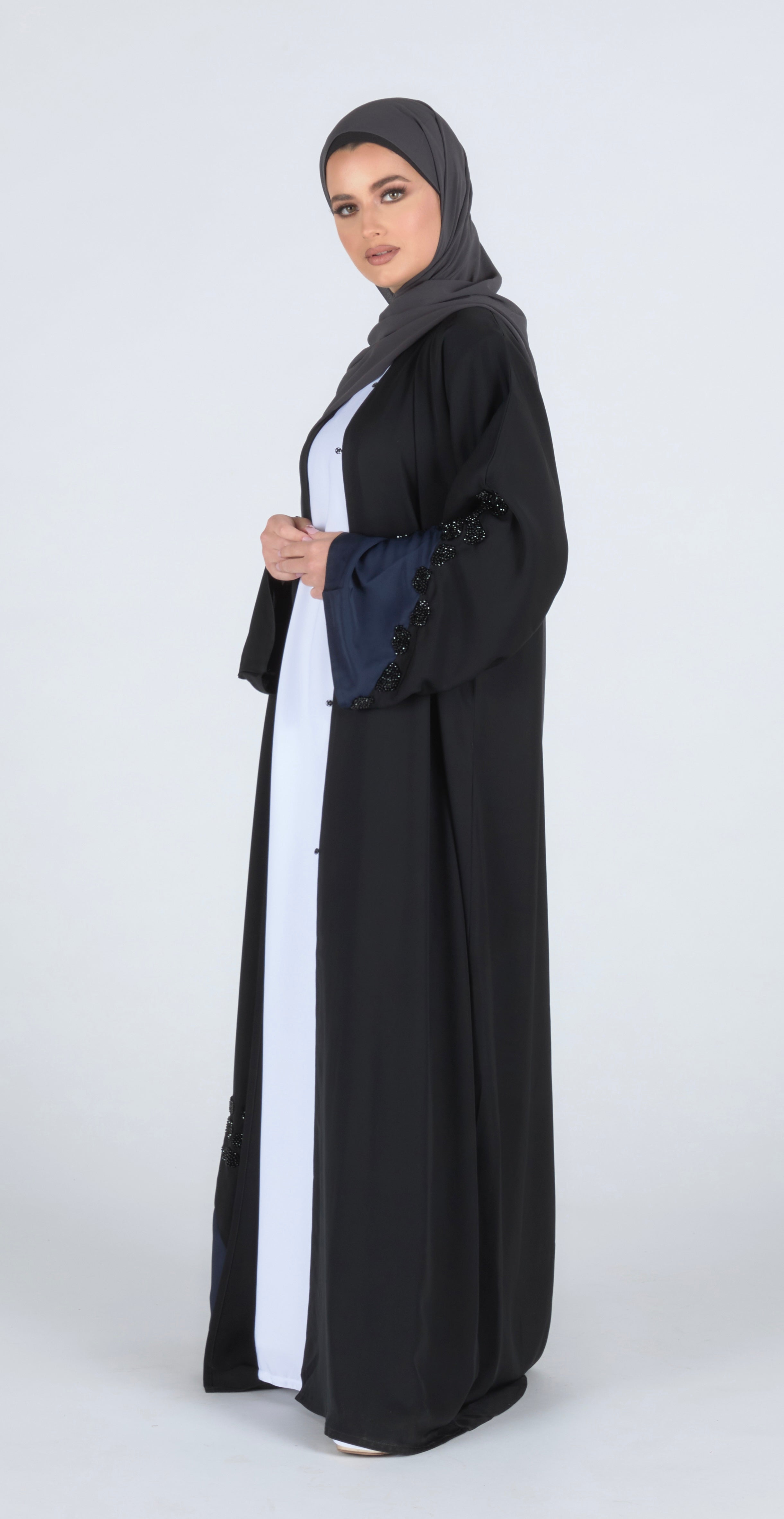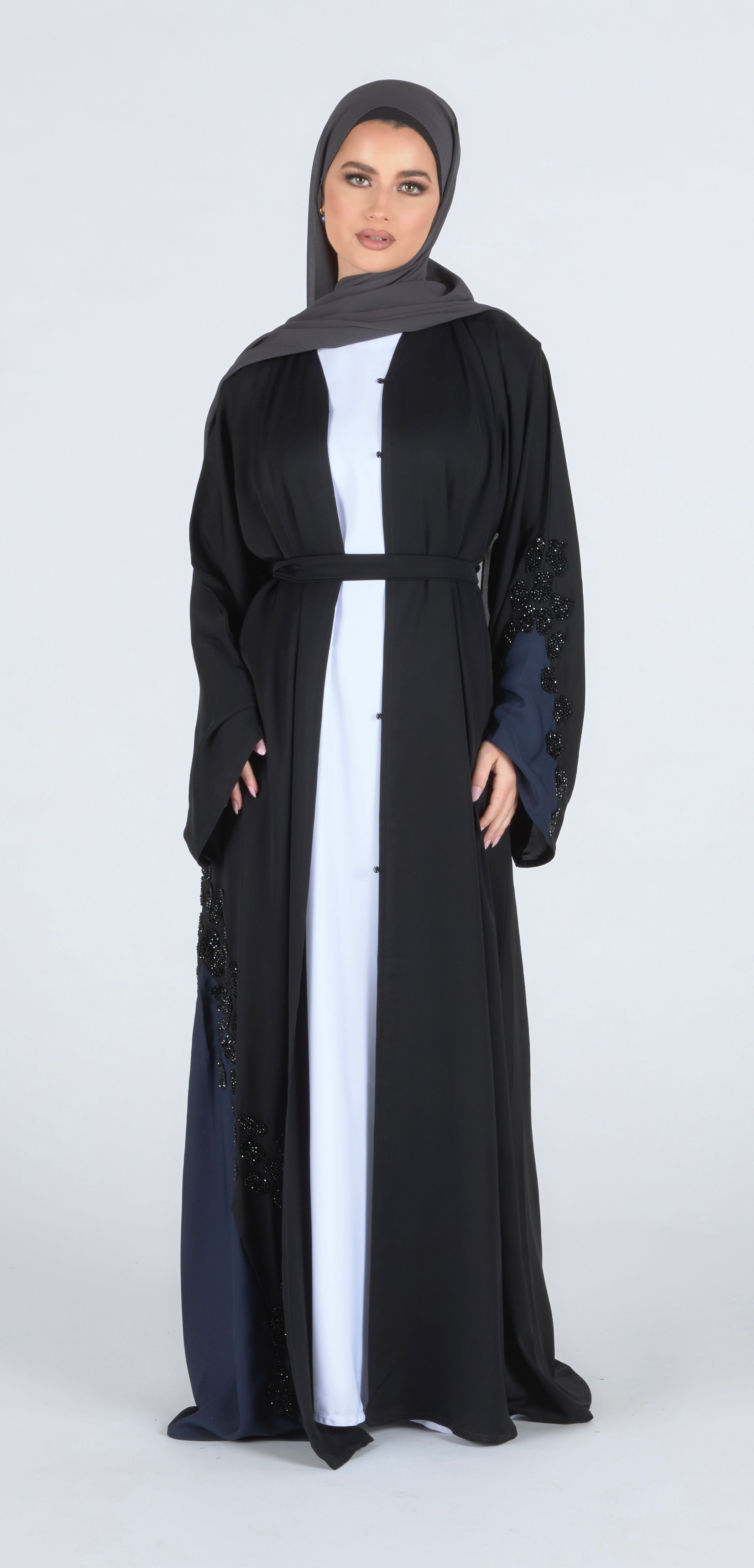 A gorgeous flowy classic black abaya with a hint of navy contrast on the side and sleeve on opposite sides.... Read more