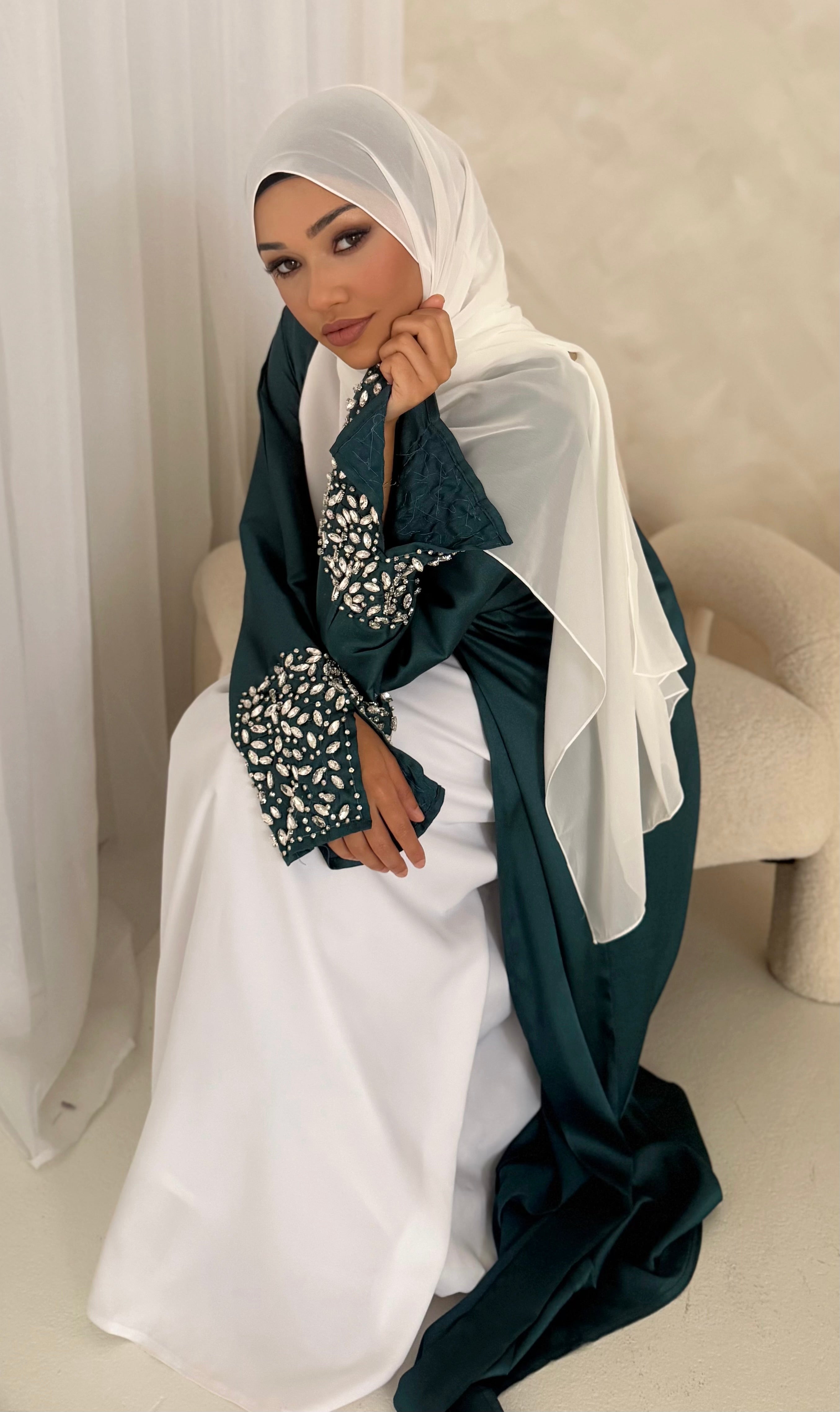 A gorgeous abaya perfect for occasion wear. An open abaya coming complete with a white inner slip dress and a... Read more