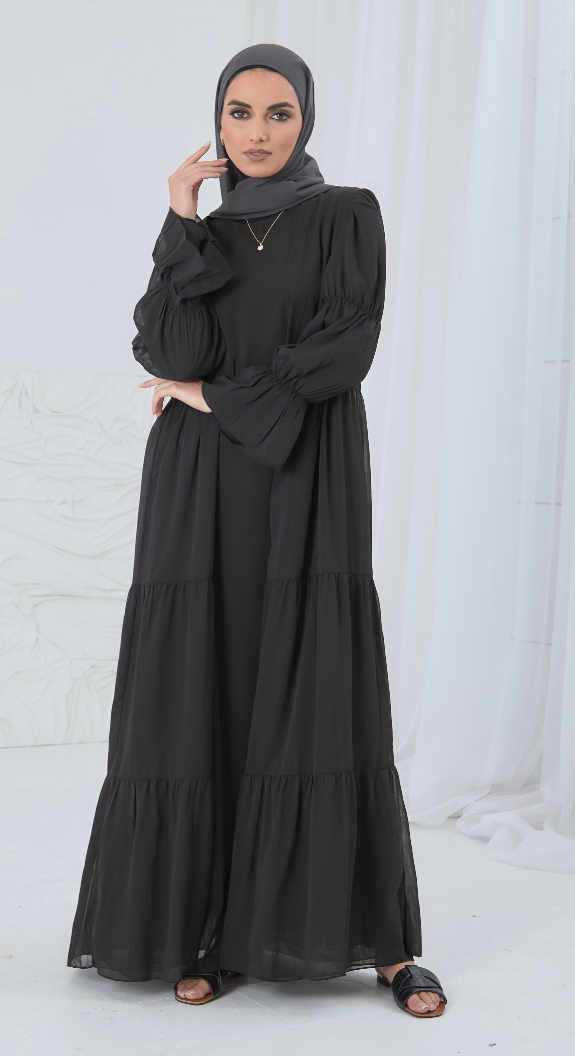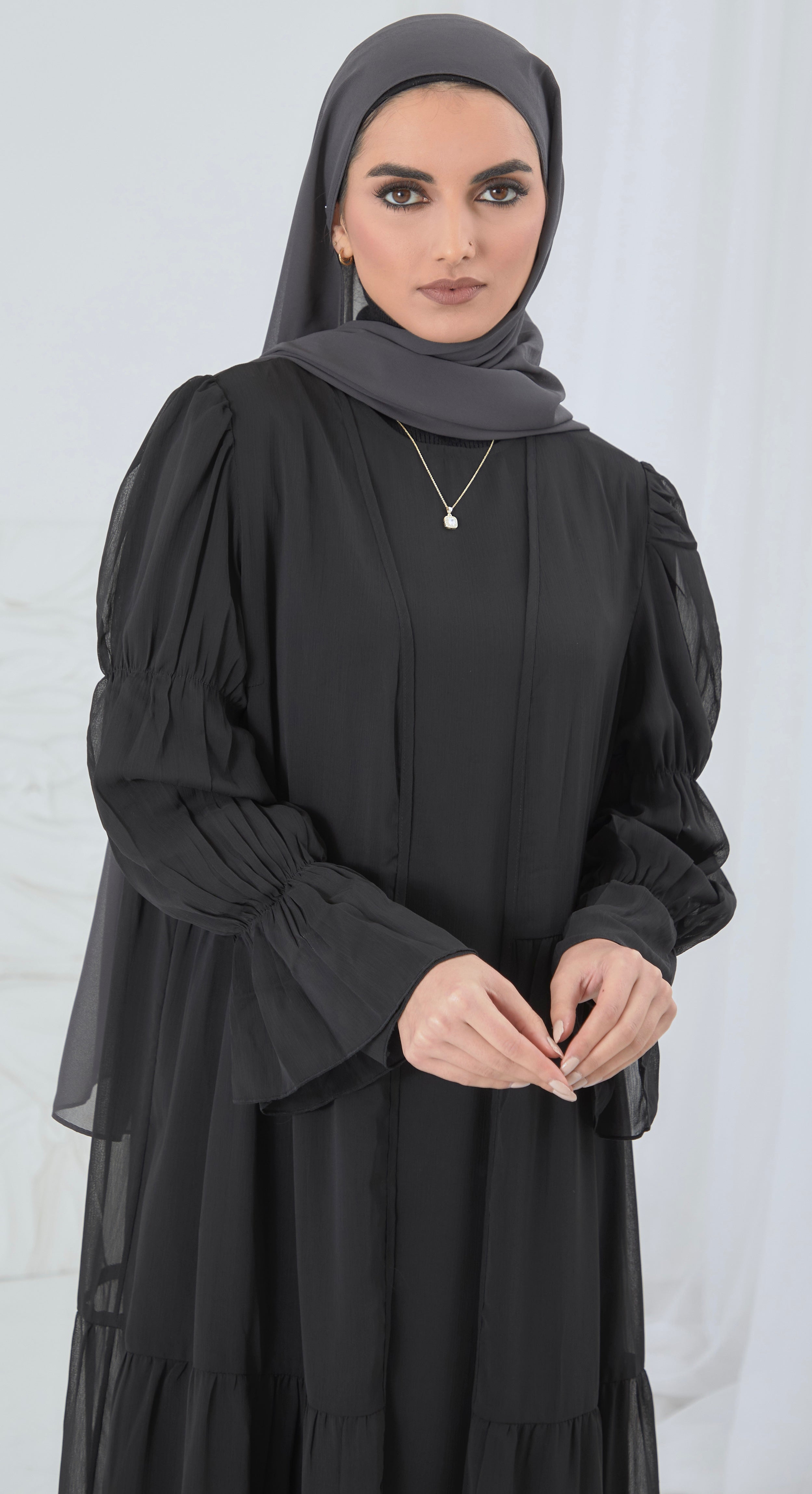 A gorgeous two piece set - an inner full sleeve dress and an open frill abaya to complete the look!... Read more